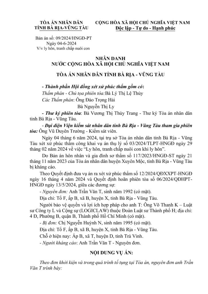 Xem file đính kèm toàn văn Bản án số: 09/2024/HNGĐ-PT