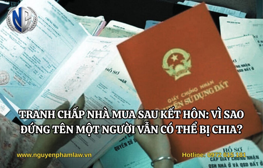 Tranh chấp nhà mua sau khi kết hôn là vấn đề khá phổ biến trong các vụ ly hôn tại Việt Nam. Việc tài sản đứng tên một người không đồng nghĩa với việc đó là tài sản riêng nếu tài sản được hình thành từ nguồn thu nhập chung trong thời kỳ hôn nhân.